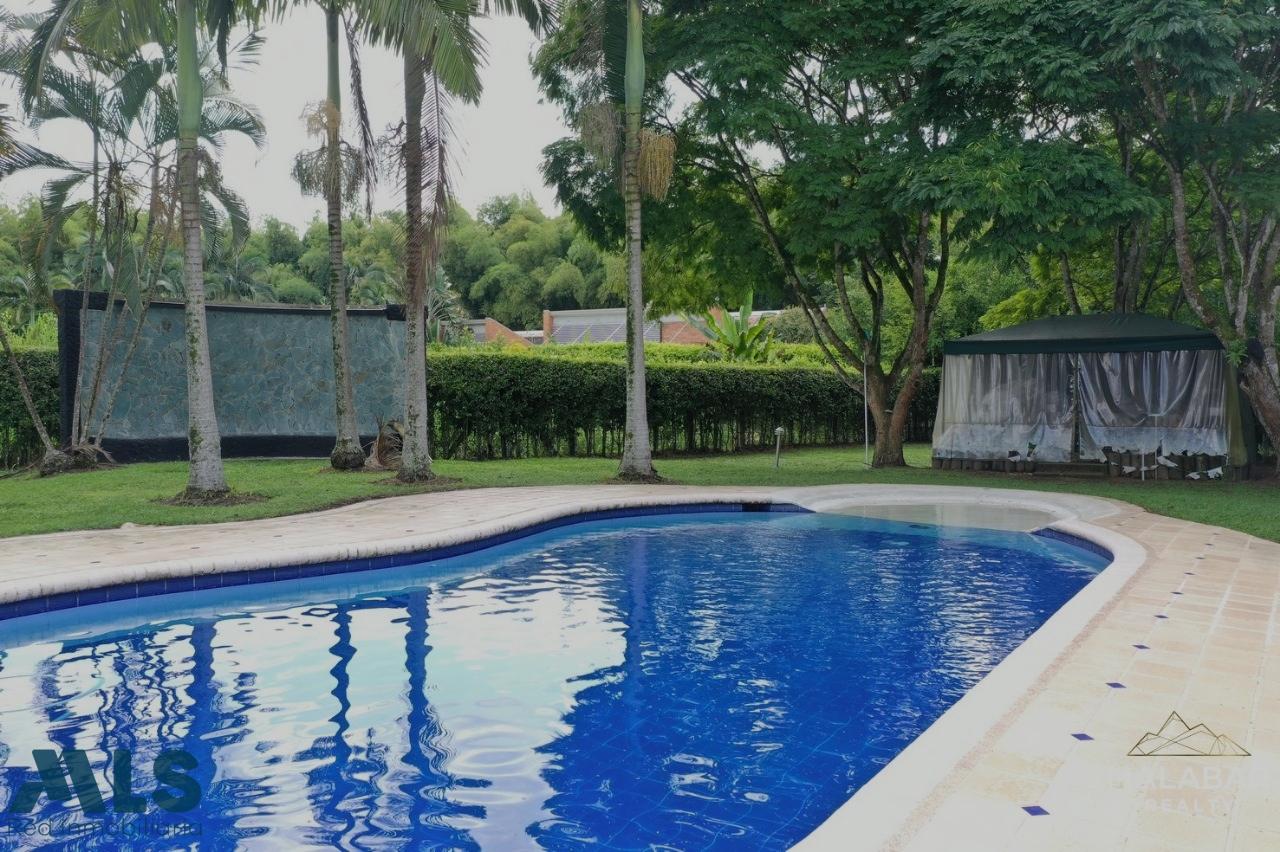 Majestuosa casa campestre, ubicada en exclusivo condominio con los mejores vecinos. Portería 24 horas los siete días de las semana. La casa está hecha con construcción tradicional con un área de 820 mt2 más 200 mt2 de terrazas, Posee piscina de 8 mt por 10 mt, con jacuzzi. El lote sobre el cual está construida tiene 1.400 mt2, pero posee un lote que hace parte del área común, pero de uso privado de 2.100 mt2. La casa esta a 25 minutos del centro de Pereira y a su alrededor se encuentran colegios de primera categoría, centros comerciales con todos los servicios. Temperatura de 24 grados centígrados promedio. Viva en un ambiente donde de verdad sienta la Calidad de Vida en Pereira.